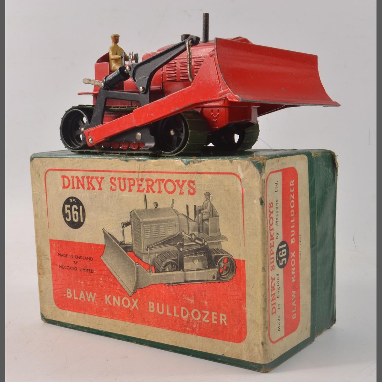 An ORIGINAL DINKY No561 SUPERTOYS BLAW KNOX BULLDOZER in original box, box in good condition and intact, including cardboard protective sleeving inside, and the Bulldozer itself only a few minor paint chips, as all in almost a new condition!