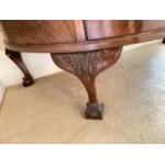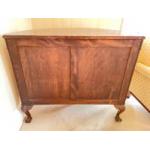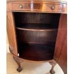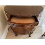 PURCHASED FROM GEORGIAN ANTIQUES - A large DEMI- LUNE walnut veneer style cabinet with central drawer and single door on ball and claw feet - dimensions 3.5ft 2ft diameter x 4ft height