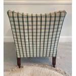 A VERY COMFY VICTORIAN armchair in a check pattern on porcelain castors - dimensions 80cm height x width 69cm