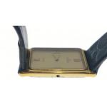 An OMEGA De Ville gents Quartz wristwatch with leather strap - serial No stamped inside the watch is 1910172 winder is missing and can be easily replaced. The back of the watch is stamped quartz 1365. We cannot tell if the watch works as requires a new battery - however this is an OMEGA classic watch!