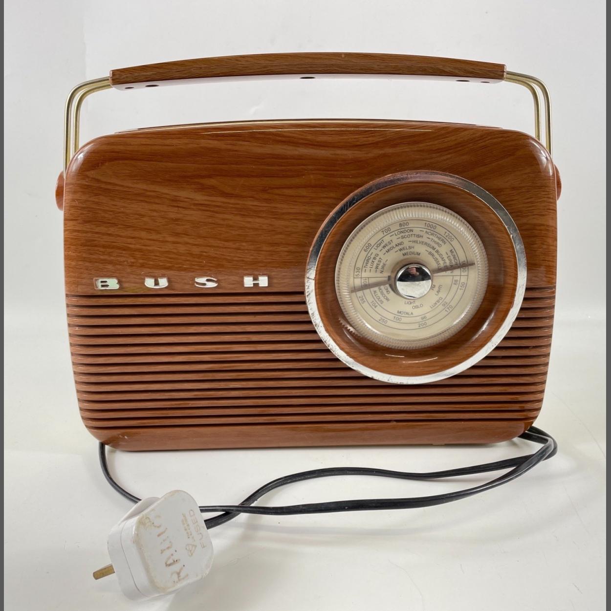 A retro BUSH TR82/A three band radio in wood effect and beige suitable for spares and repairs - aerial missing