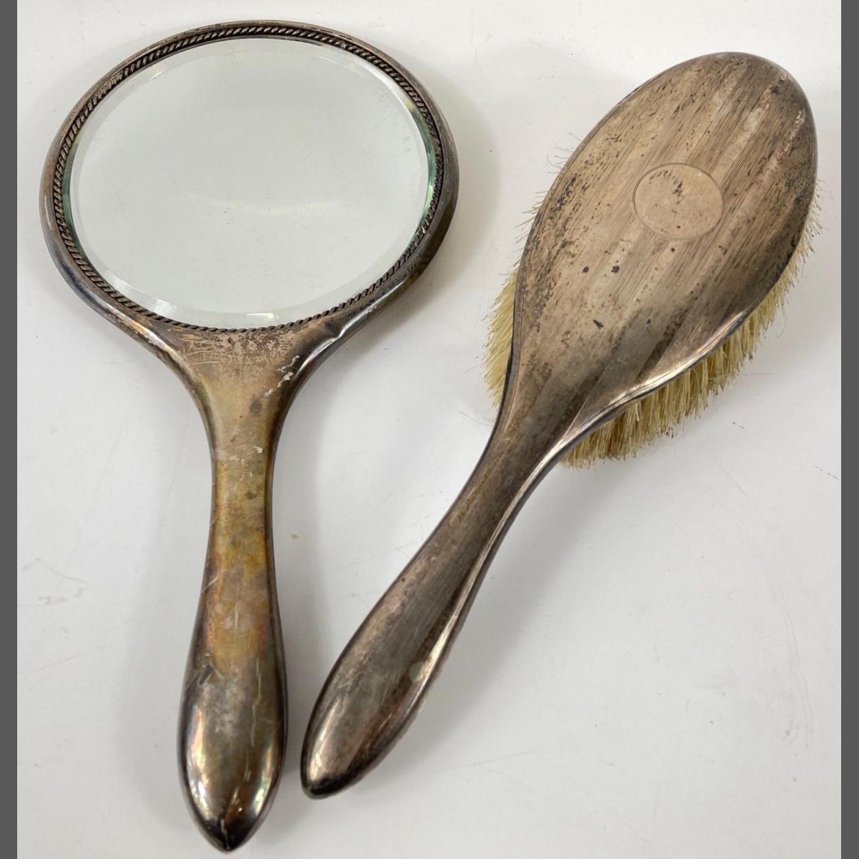 A Birmingham 1918 silver hallmarked hand mirror and brush gross weight 528gms