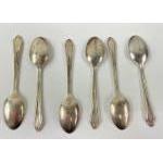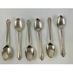 Six matching design silver coffee spoons, boxed, 2 hallmarked Chester 1953, 2 hallmarked Edinburgh 1953, 1 hallmarked Birmingham 1953, 1 hallmarked Sheffield 1953, all by silversmith H.C.D, gross weight 44gms