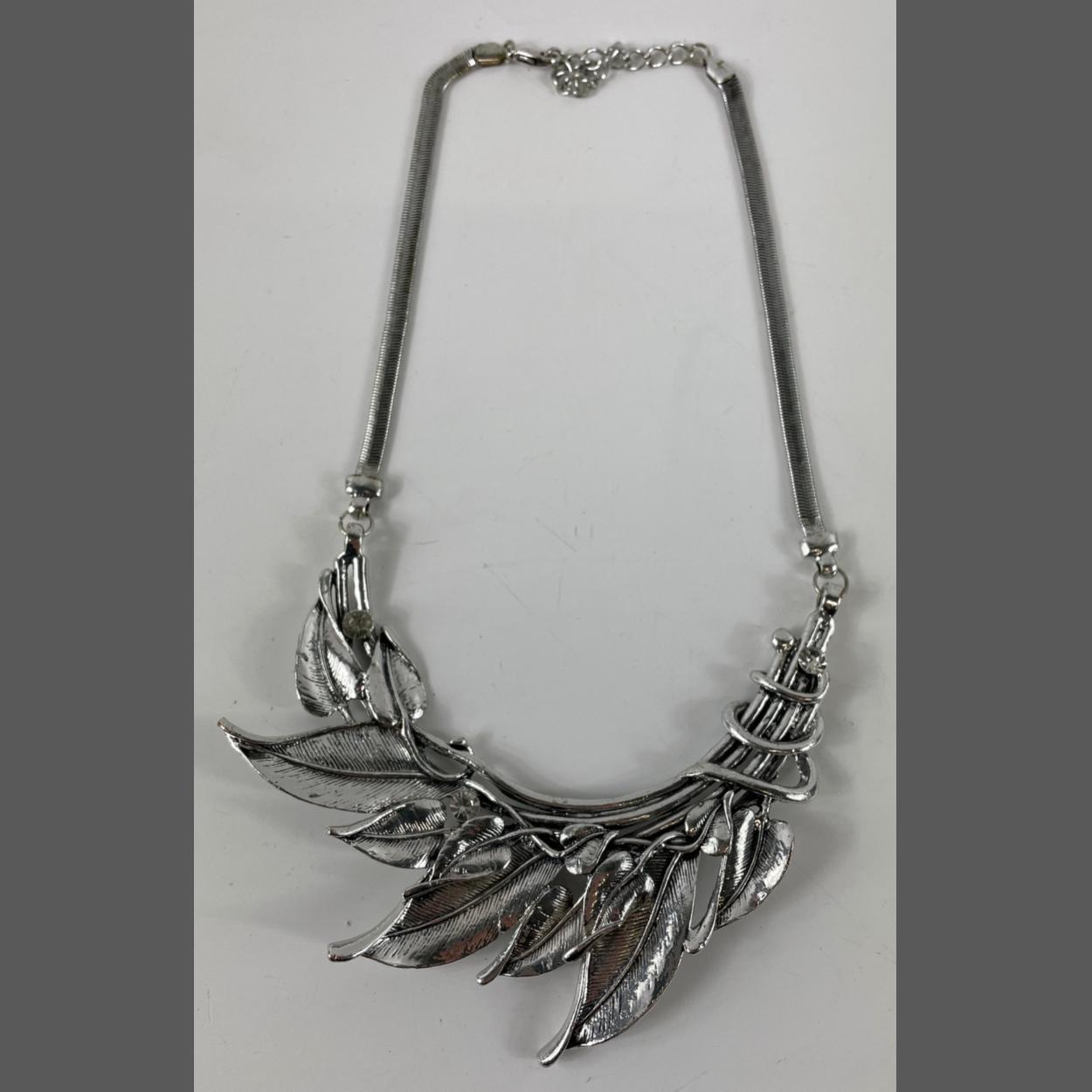 QUALITY! BOUTIQUE bought from YORK a Substantial handmade white metal TORQUE in leaf form with a nice sparkly white stone - width 13cm