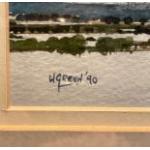 ORIGINAL WATERCOLOUR ' Ballooning Over To Edinburgh' by W Green 1990 - dimensions 15cm x 20cm height