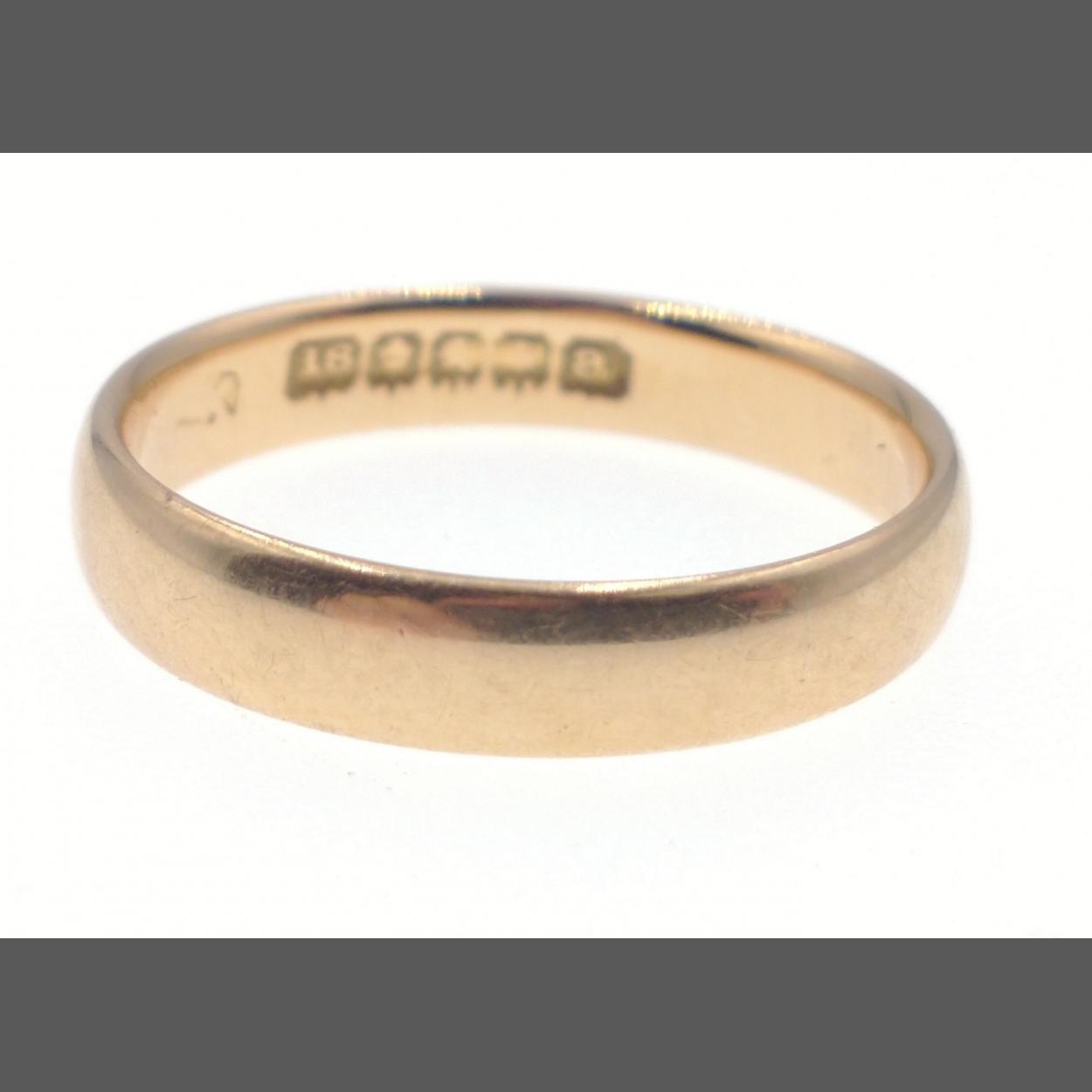 An 18ct yellow gold Hallmarked wedding band ring size Q, weight 3.92g approx