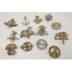 Twelve British military cap badges to include the 3rd KING'S OWN HUSSARS, ROYAL WEST, DURHAM LIGHT INFANTRY, WORCESTERSHIRE REGIMENT, THE LANCASHIRE FUSILIERS, SOUTH STAFFORDSHIRE, THE SOUTH WALES BORDERERS (Egypt), THE KING'S OWN, AIR TRAINING CORPS etc
