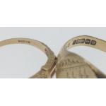A small buckle ring 375 stamped yellow gold 1.45g ring size R , also a gents signet ring 375 stamped initialed MM ring size T weight 4.75g