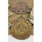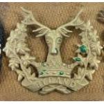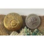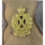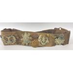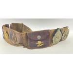 A WWl belt with 15 badges and buttons including SCOTTISH HORSE, ROYAL ARMY MEDICAL CORPS, ARGYLL AND SUTHERLAND, BLACK WATCH, ROYAL ENGINEERS, AUSTRALIAN COMMONWEALTH MILITARY FORCES, THE CAMERONIANS etc
