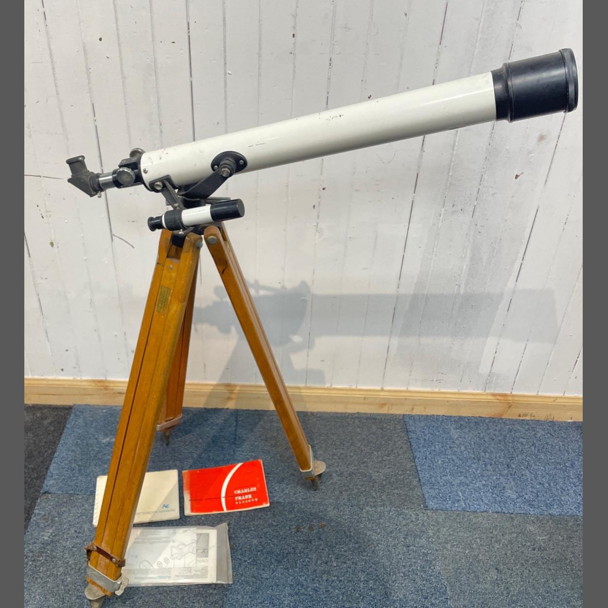 Denhill Astronomical telescope with wooden tripod stand and 3 manuals. D=60mm F=700mm