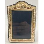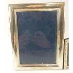 A large 925 stamped SILVER photograph frame dimensions 23cm x 18cm gross weight 353g approx, also a smaller 925 stamped decorative silver photograph frame dimensions 13cm height x 9cm width approx gross weight 93g and a vintage white metal photoframe dimensions 15cm x 12.5cm approx