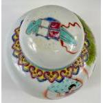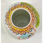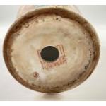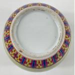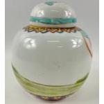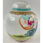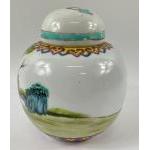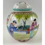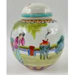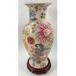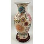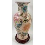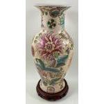An ORIENTAL vase table lamp base on a wooden raised stand decorated in flora with the hole on the base already in place - dimensions height 31cm x width 15cm taken at widest point with also a nice antique hand-painted ORIENTAL lidded ginger jar with traditional scenes - dimensions 15cm height x 13cm diameter at the widest point - no chips cracks or signs of damage repair noted.