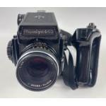 Safely packed within a metal case a MAMIYA 645 medium format camera with a Mamiya-Sekor C 1:4 f=150mm no.40285 lens in case, a Mamiya-Sekor C 1: 2.8 f=55mm No 21795 lens in case, and a Mamiyar-Sekor C 1:2.8 f-80mm no 78038 plus 3 winders with instructions