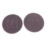 Two 1855 5 Centimes Napoleon III (1808-1873), Empereur de France (1852-1870) coins, bronze, diameter 25mm, one of the coins is well rubbed, the other in much better condition.