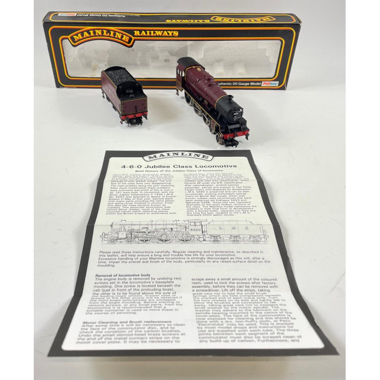 A MAINLINE RAILWAYS AUTHENTIC 00 GUAGE MODEL by PALITOY - a 4-6-0 Jubilee class 5XP locomotive LMS crimson (cat no 37-061), boxed in excellent condition (slight damage to one end flap of box)