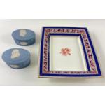 also a pair of SARAH WEDGWOOD JASPERWARE lidded trinket dishes dimensions 8cm x 6cm x 3cm depth each,
