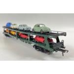 An unboxed FLEISCHMANN 5284 car transporter complete with 8 cars carefully stored in newspaper for the last 30+ years, excellent condition