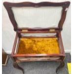 An elegant mahogany glazed hinged-lid and sides bijouterie/trinket display table on cabriole legs - dimensions 65cm x 45cm x 75cm height