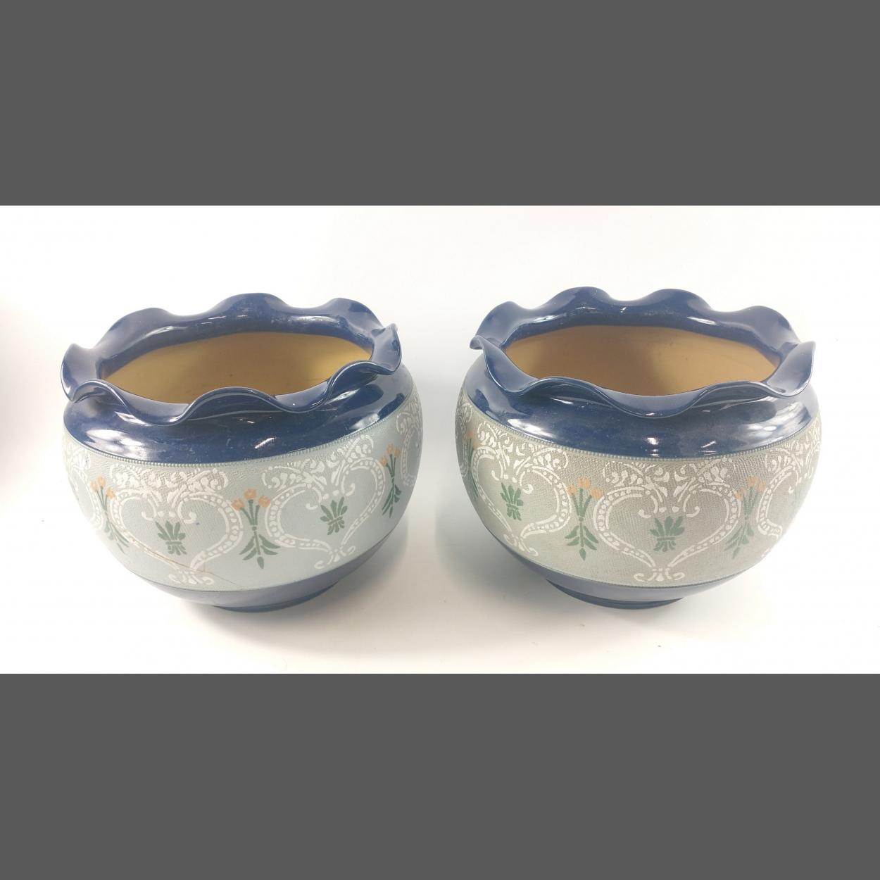 A nice pair of pottery jardinieres - dimensions 20cm height x 26cm diameter