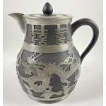Vintage Chinese Hor Chung Weihaiwei Yixing Clay Pewter Mounted Dragon Tea pot 14cm tall x 10cm wide approx