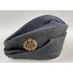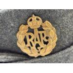 An RAF side cap,from the 1939, . Badge and crown buttons in place. The length of the cap, from front to back, is 31cm approx - complete a paper photo copy of HJ Boyd ''On Guard duty''. at RDF Yatesbury, 1939