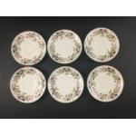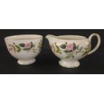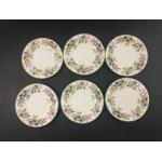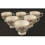 A WEDGWOOD HATHAWAY ROSE teaset comprising 6 cups, 6 saucers (14.5cm), 6 plates (15cm), 1 cake plate (24cm), 1 milk jug and sugar bowl