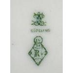 VINTAGE - Three COPELAND plates diameter 23cm and a matching tazza 10cm tall, with pattern in blue rings with pink roses first registered in August 1852, plus 3 PARAGON ROCKINGHAM plates (21cm dia),