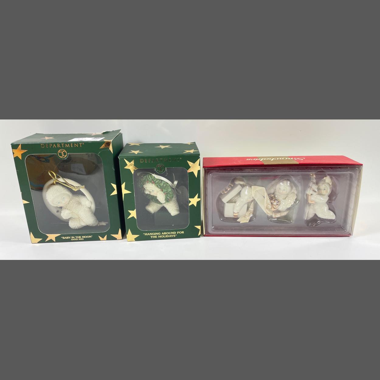A collection of QUALITY XMAS TREE DECORATION boxed ornaments to include a 'Hanging around for the holidays', Baby In The Moon, a trio Of Snowbabies