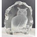 Three pieces of MATS JONASSON crystal art glass, each boxed and signed to base, the first an OWL approx 14cm tall, the second a POLAR BEAR approx 12cm tall and lastly another OWL only 5cm tall