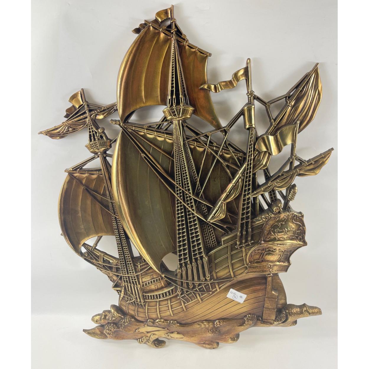 SHIP AHOY! A large brass style wall decoration in GALLEON ship sailing on the high seas form - looks really AMAZING! 75cm x 55cm approx - really eye catching!