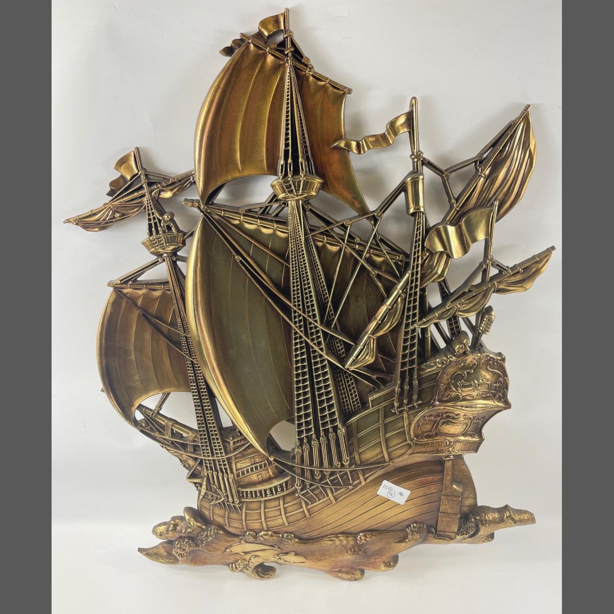 SHIP AHOY! A large brass style wall decoration in GALLEON ship sailing on the high seas form - looks really AMAZING! 75cm x 55cm approx - really eye catching!