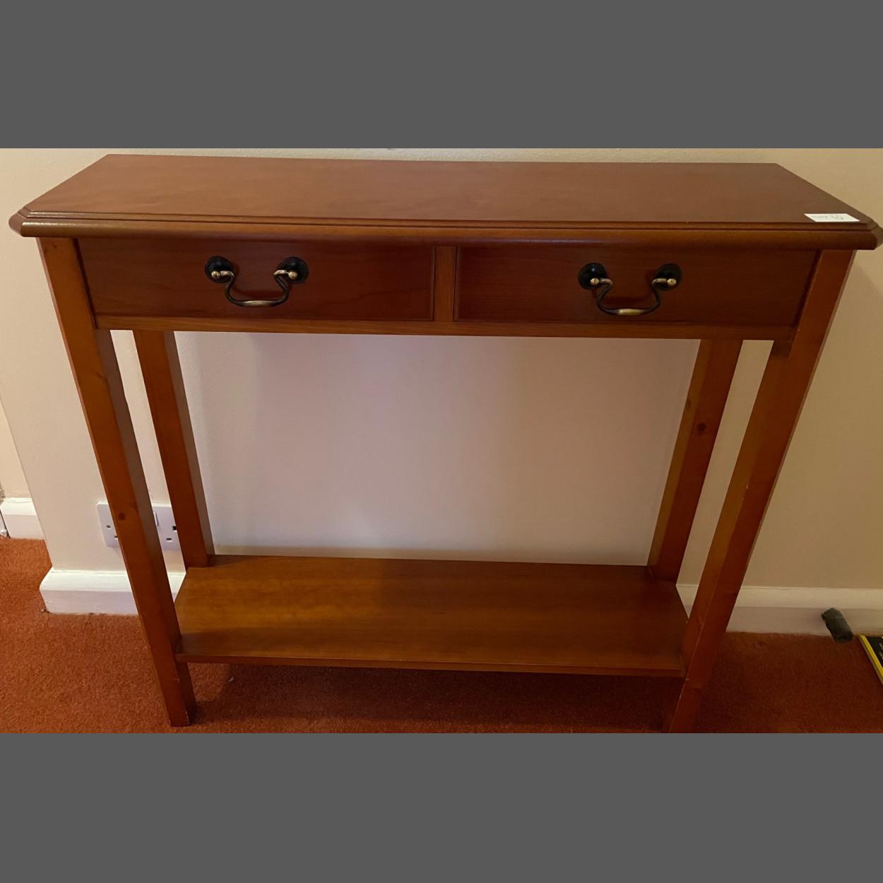A slimline console table with two drawers and parcel shelf 2.5ft long x 10” depth approx