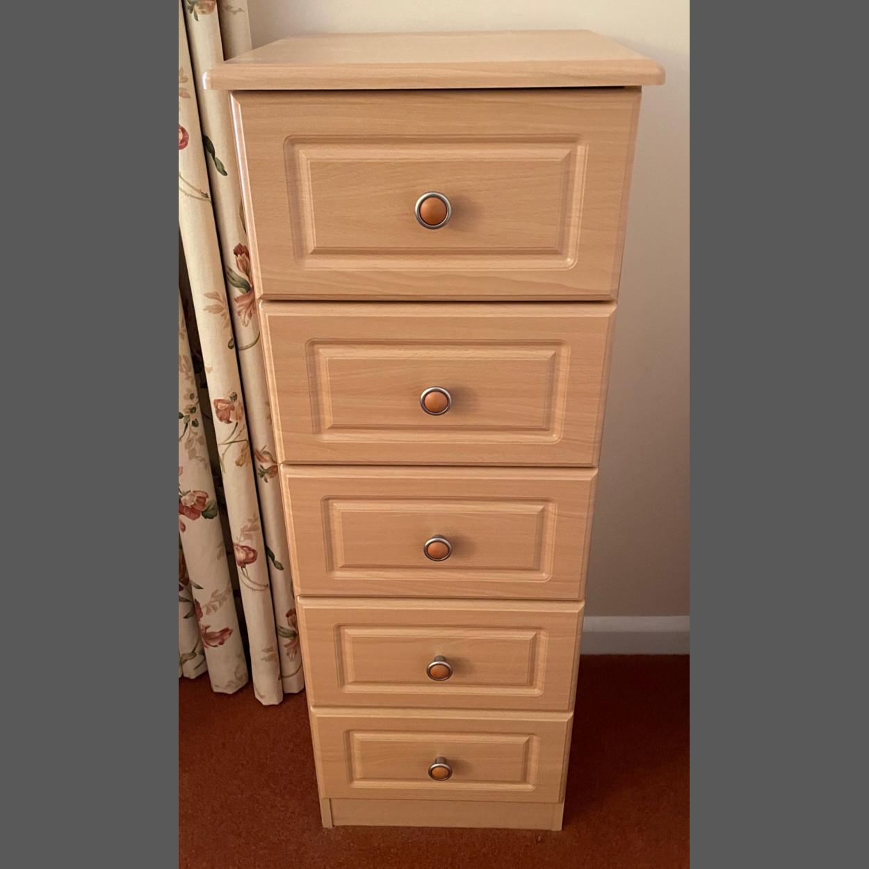 A MODERN 5 drawer slimline chest of drawers - dimensions 1ft width x 18†depth approx