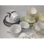 A fine collection of mixed fine bone china to include tea for two with ROSLYN CHINA cups, saucers and plates, or with ROYAL OSBORNE (2 each cups, saucers, plates), 3 trios in hand-finished TUSCAN china, or a tea service for 8 in PLANT TUSCAN CHINA (8 cups, 8 saucers and 8 plates) or RICHMOND - 3 cups, 2 saucers, 1 plate, 1 milk jug, MEITO - 2 cups, 3 saucers and 3 plates, ROYAL THAILAND 4 cups, 4 saucers and 2 plates plus some additional pieces