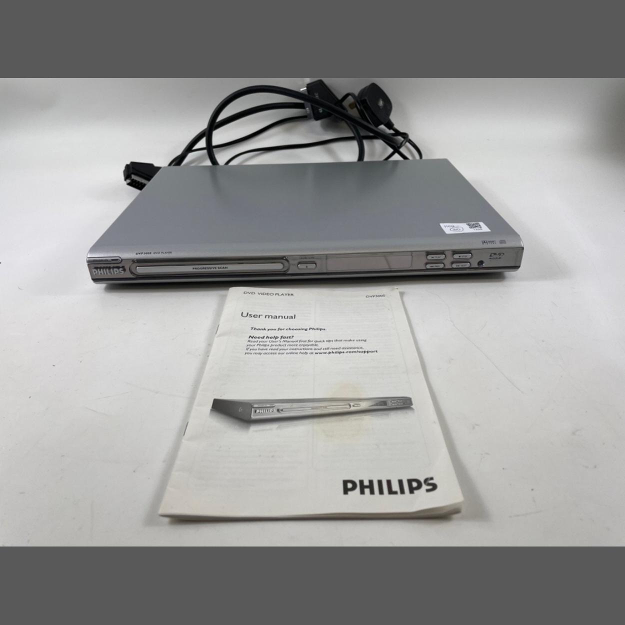 A PHILIPS DVP 3005 DVD player with power cord and operating instructions