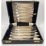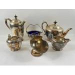 A collection of EPNS to include a JAMES DIXON and SONS teaservice, hot water, teapot milk jug and sugar, an EPNS fish service 6 setting canteen, also a collection of plate cutlery and jam spoon with mother of pearl, 3 pairs of sugar tongs and a silver Hallmarked SHEFFIELD teaspoon 90g weight approx