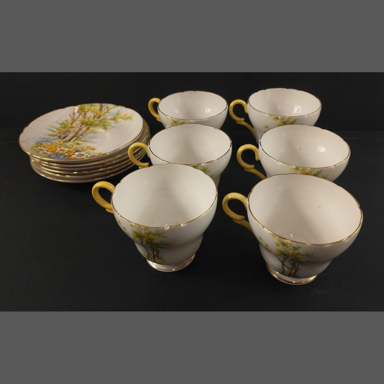 A vintage SHELLEY 'Daffodil Time' tea service consisting of 6 cups and saucers