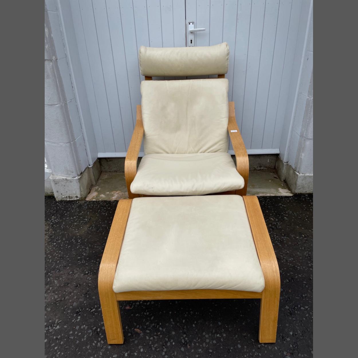 standard size IKEA cream leather style relaxer chair and matching footstool - cost new £220 approx