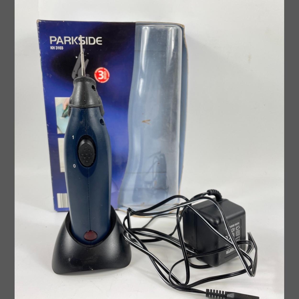 A boxed PARKSIDE KH 3103 electric cordless scissors with charger