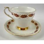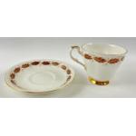 A part PARAGON 'Elegance' tea service in white with red and gilt design, to include 3 cups (1 slight crack), 6 saucers (1 small chip), 5 side plates, 1 cake plate (24cm), 1 milk jug and 1 sugar bowl
