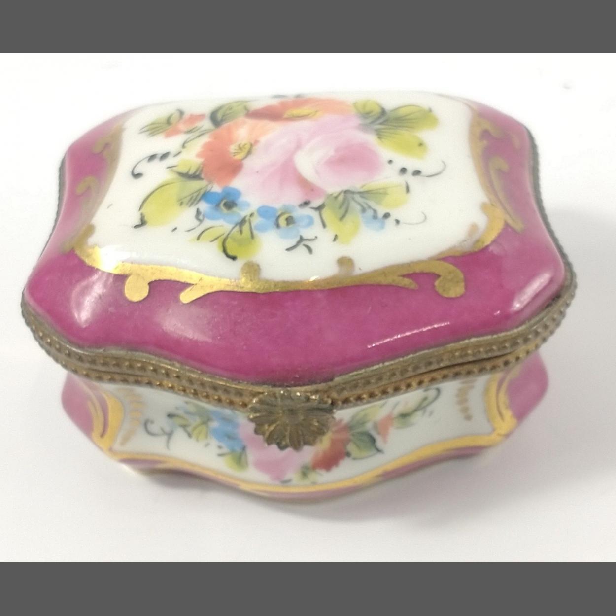 An antique pretty porcelain lidded hand painted trinket box possibly French 7x6x4cm