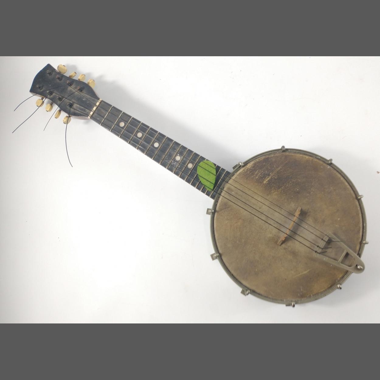 A VINTAGE 8 string Banjo Mandolin circa 1930`s (no case) no maker's badge present - 8.5 inch drum head. no key present to adjust resonator tension. Needs restringing, only 4 strings presently, certainly well played in the past!