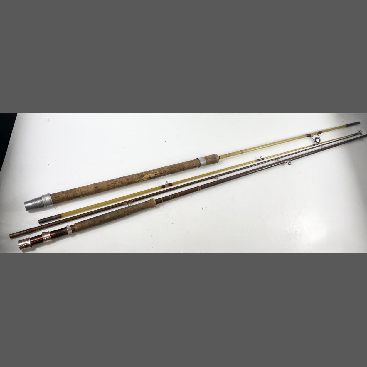 Two rods, one possibly Martin James (label very indistinct), 8.5ft approx in 2 pieces, the second "A.F.T.M. recommended line 6 grains/ft, F81/2-9ft 767" in 2 pieces, no bags