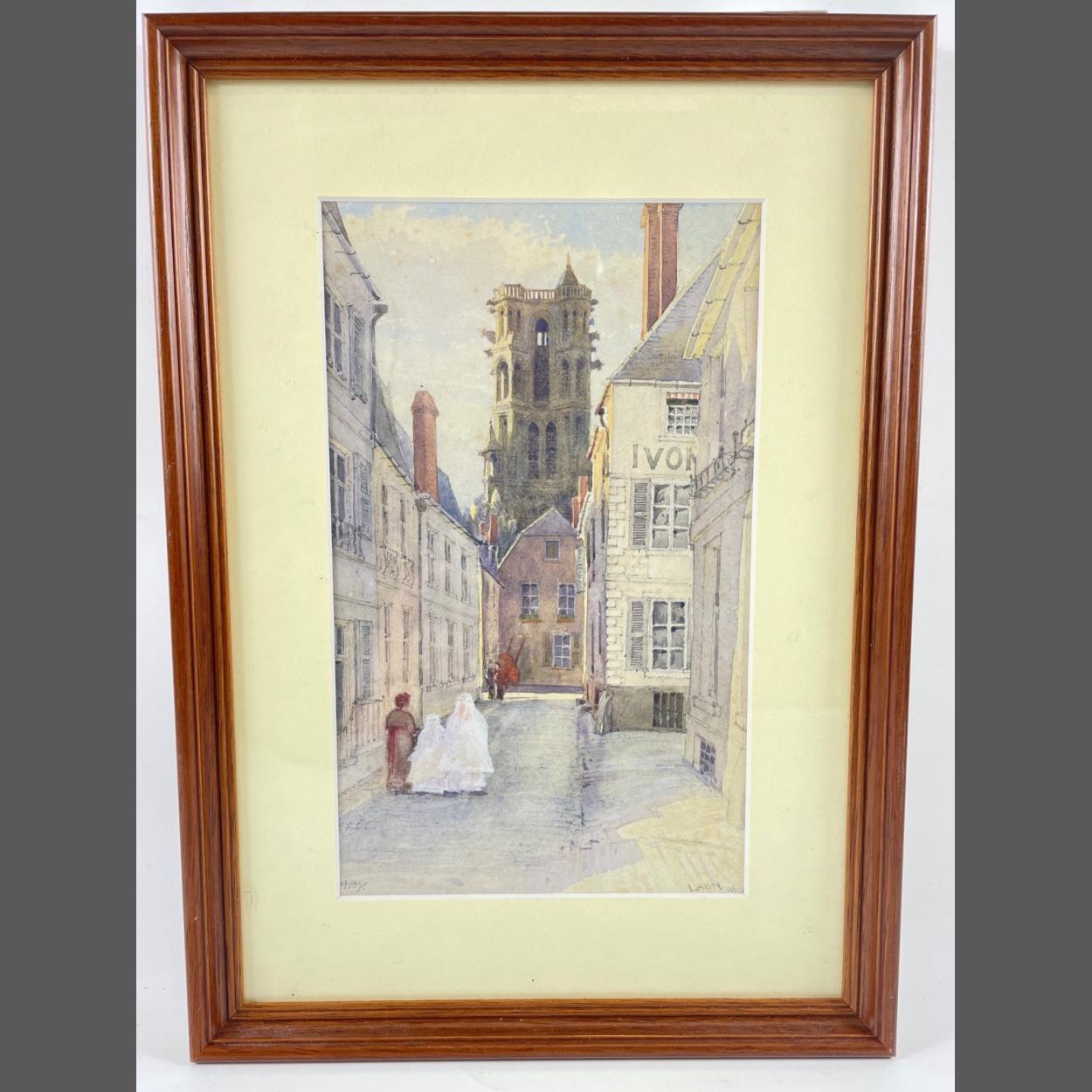LAON 1912 Original Watercolour French Street Scene - dimensions 6" x 9.5"