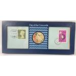 Mint coin DAY OF THE CONCORDE commemorating Concorde's inaugral flight from Heathrow to Bahrain on Jan 21st 1976, comes with mint stamps from UK and Bahrain and a model Concorde 25cm long