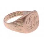 Two signet rings, one 18ct stamped Birmingham ring size Q weight 2.2g approx, the other with initials(which are indistinct) engraved on the top of the ring, 375 stamped yellow/rose gold ring size P/Q weight 2.65g approx