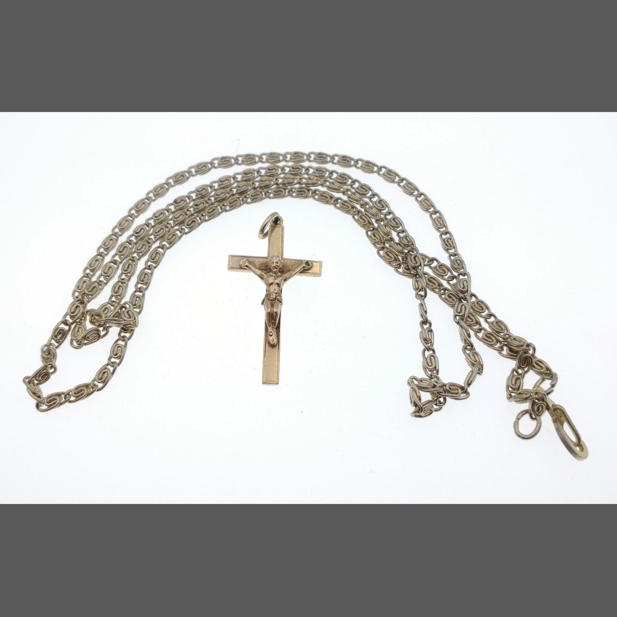 NICE QUALITY! A Birmingham Hallmarked 375 stamped crucifix pendant weight 1.79g approx, with a 'yellow metal chain' weight 5.5g approx