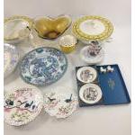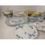 A mixed decorative china lot to include 6 VILLEROY nd BOCH saucers (13cm), a Wm ADAMS Chinese Ching plate (26cm), a 33cm blue and white ashet, 2 vintage BEIDGWOOD ANCHOR serving dishes (23cm), 1 with lid a large Oriental teapot, a pair of ROYAL WORCESTER boxed trinket dishes etc