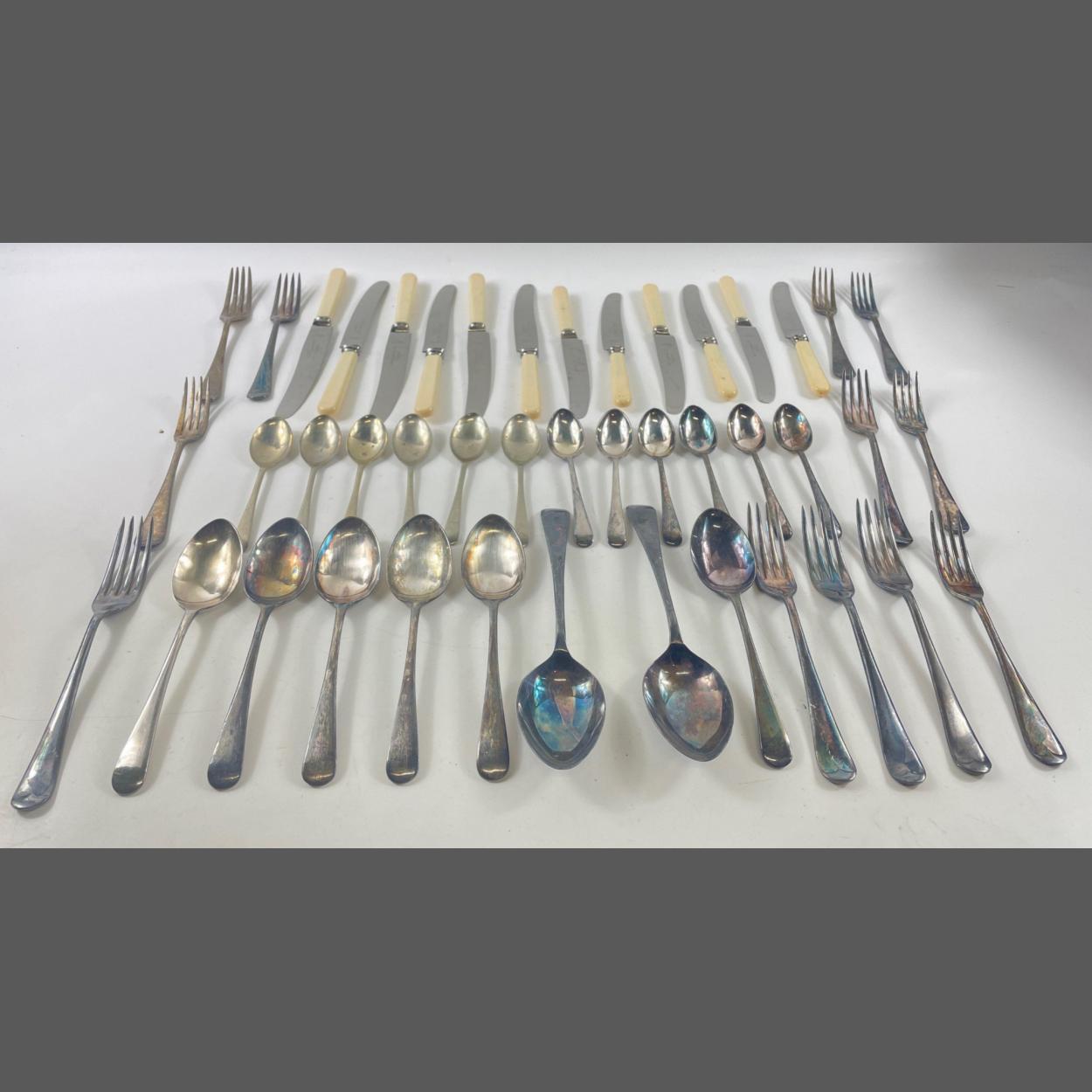 A quantity of loose cutlery to include 12 white metal forks, 12 SMITH and SEYMOUR SHEFFIELD dining knives in nice condition(simply the best spreading knives in my opinion!) 12 teaspoons and 8 dessert spoons