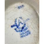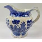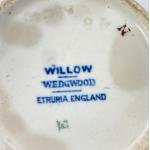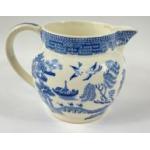 Two vintage blue and white china jugs, the first by ALLERTON'S WILLOW pattern standing approx 13cmtall, the second by WEDGWOOD WILLOW pattern standing 7cm tall (slight chip to lip)